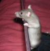 Description: My rat Ash, at 6 wks old, climbing up the baby-rat-tank and peering over the edge