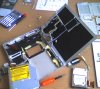 Description: My old PowerBook in pieces all over the desk