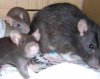 Description: Grown-up Bramble rat with baby Ash and Rowan rats