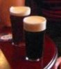 Description: Two pints of beer on a pub table