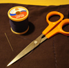 Description: Needle, thread, and scissors