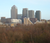 Description: The towers at Canary Wharf seen from Staves Hill in Bermondsey